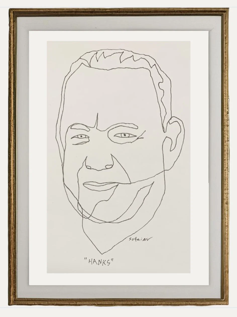 “Continuous Hanks” I drew Tom Hanks using a technique called continuous line drawing. I put the pen to paper and drew without lifting the pen until the drawing was complete. (The only exceptions were his eyes.) Try drawing a continuous line portrait some time. Look mostly at your subject rather than at what your pen is doing. Then do just the opposite. Which one turns out better? The original portrait is in the private collection of a friend and fellow artist in Illinois.